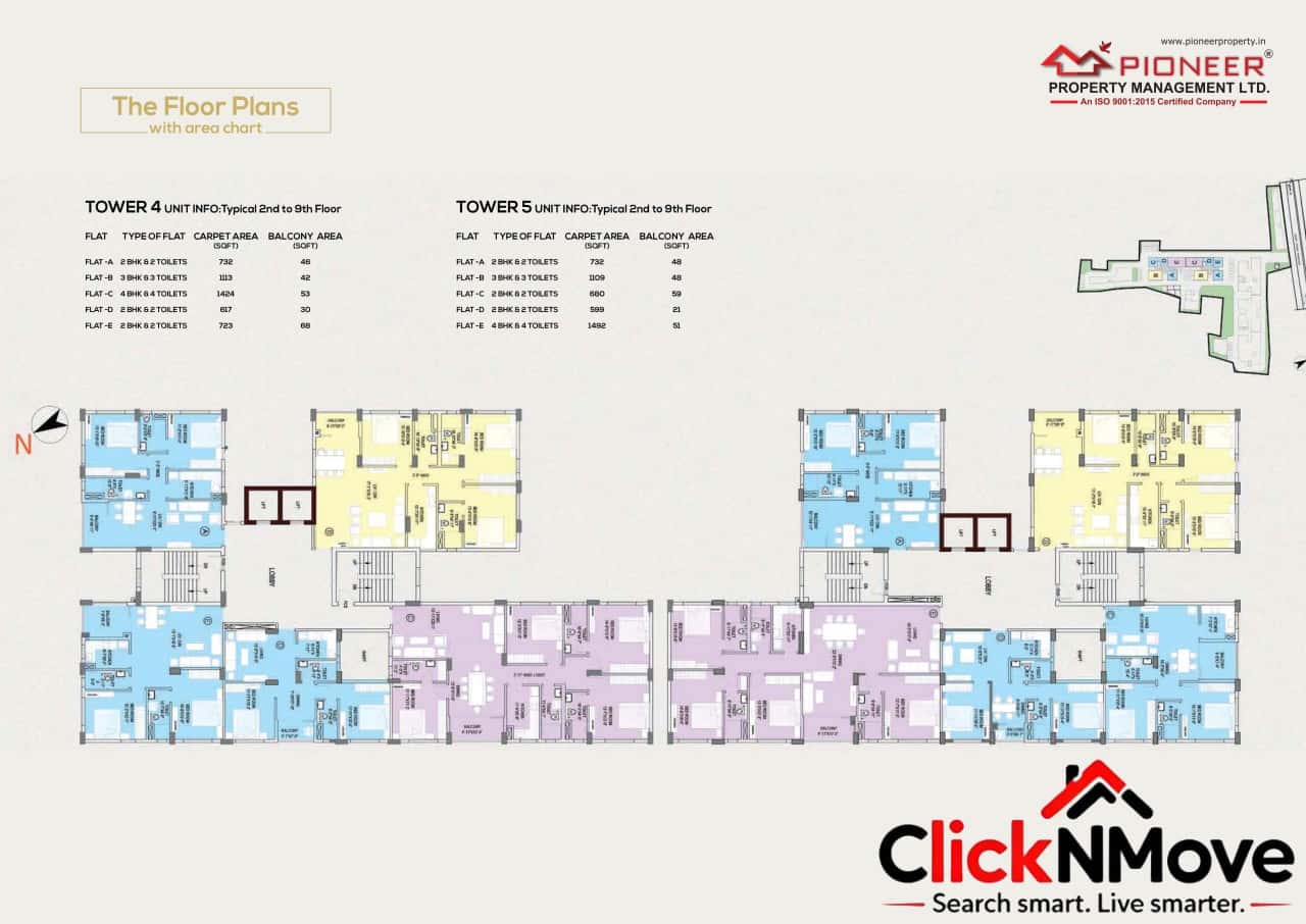 • Height of Tower :B + G + 9 & G + 4